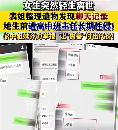女生突然轻生离世 表姐整理遗物发现生前遭高中班主任长期性侵